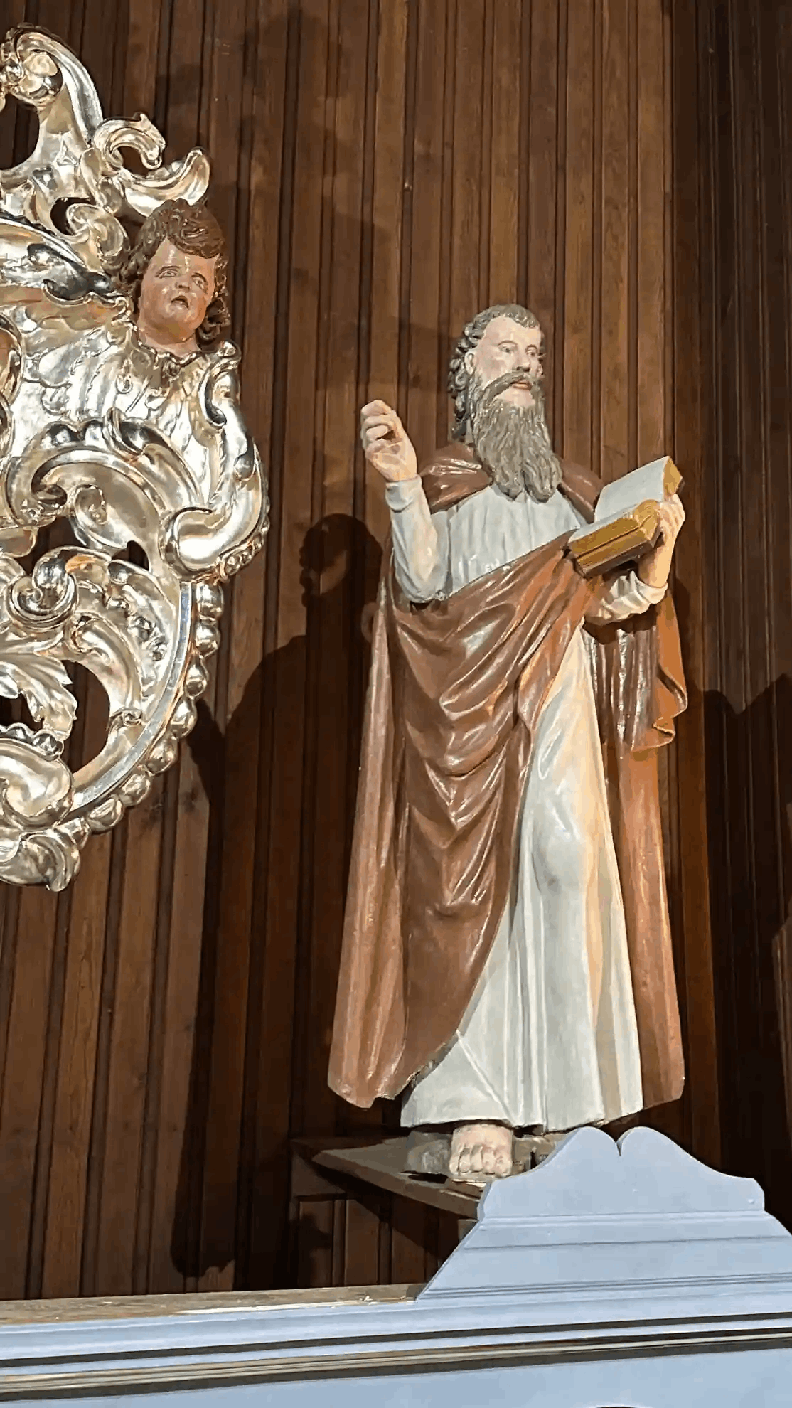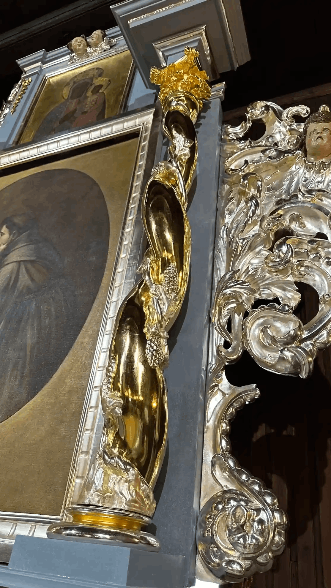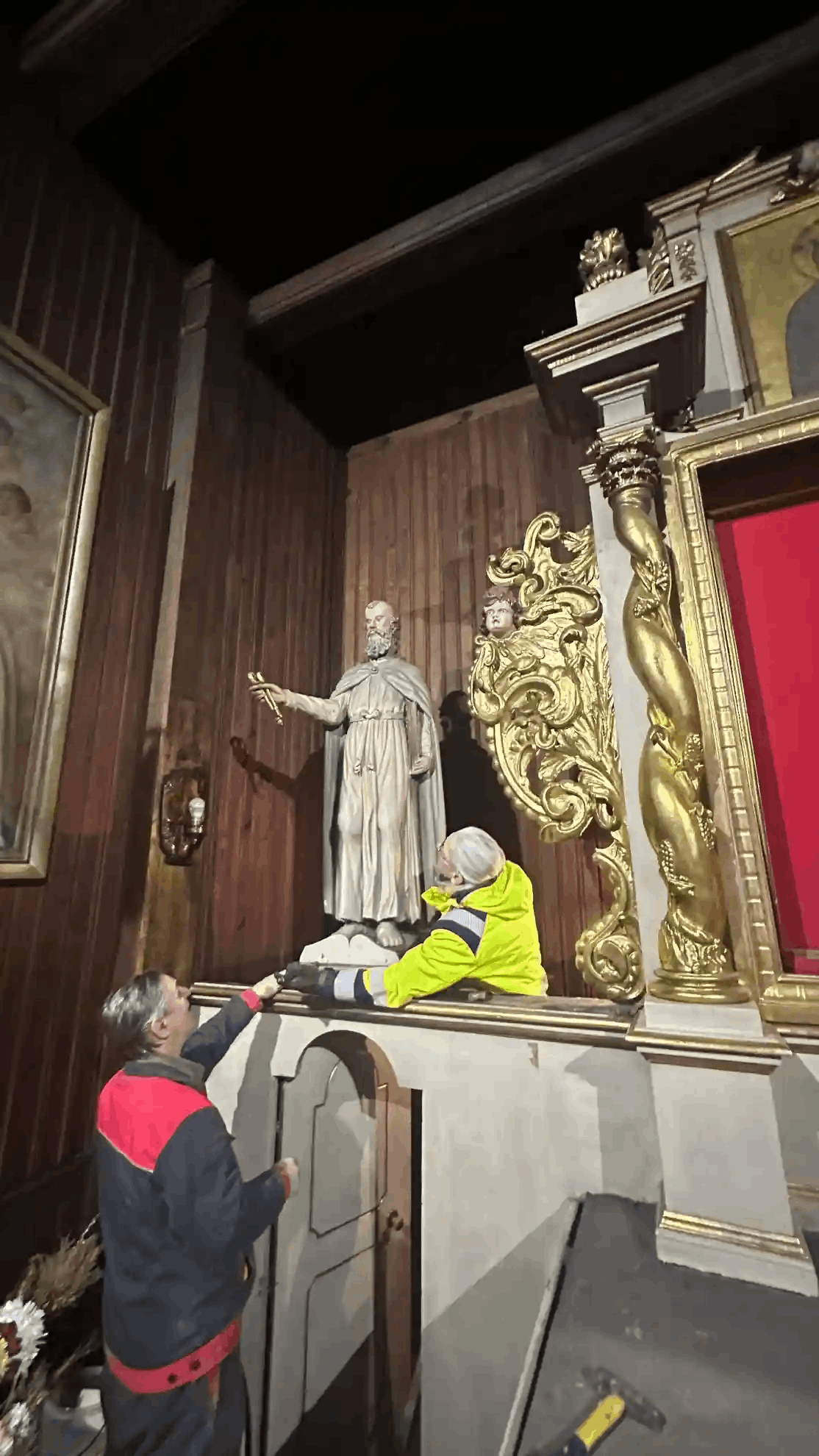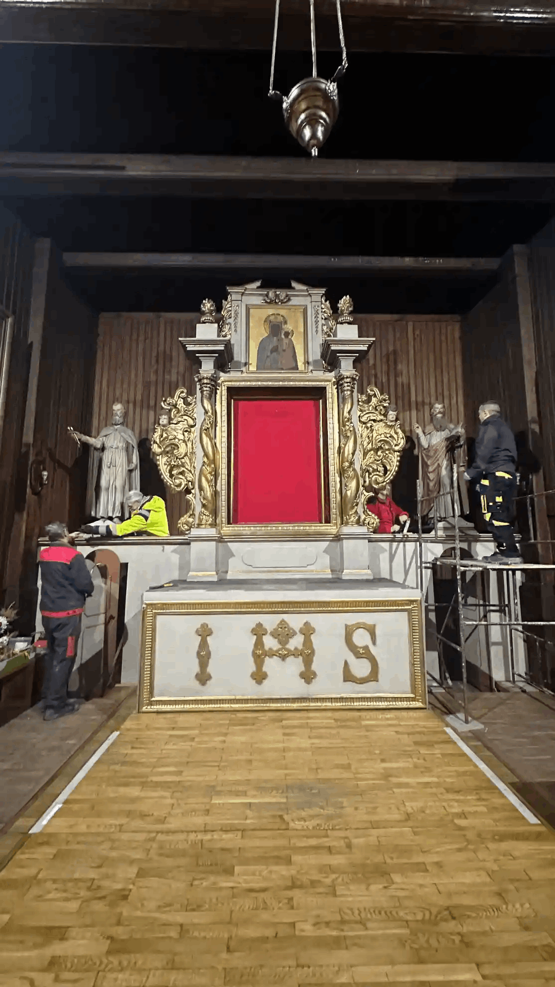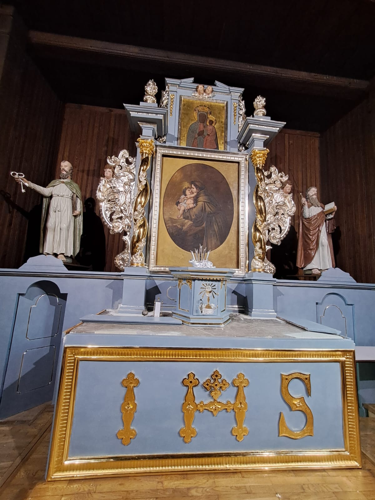 marzec – czerwiec 2024 – prowadzenie prac konserwatorskich przy konserwacji XVII wiecznego ołtarza głównego z kościoła św Aleksego w Płocku Trzepowo